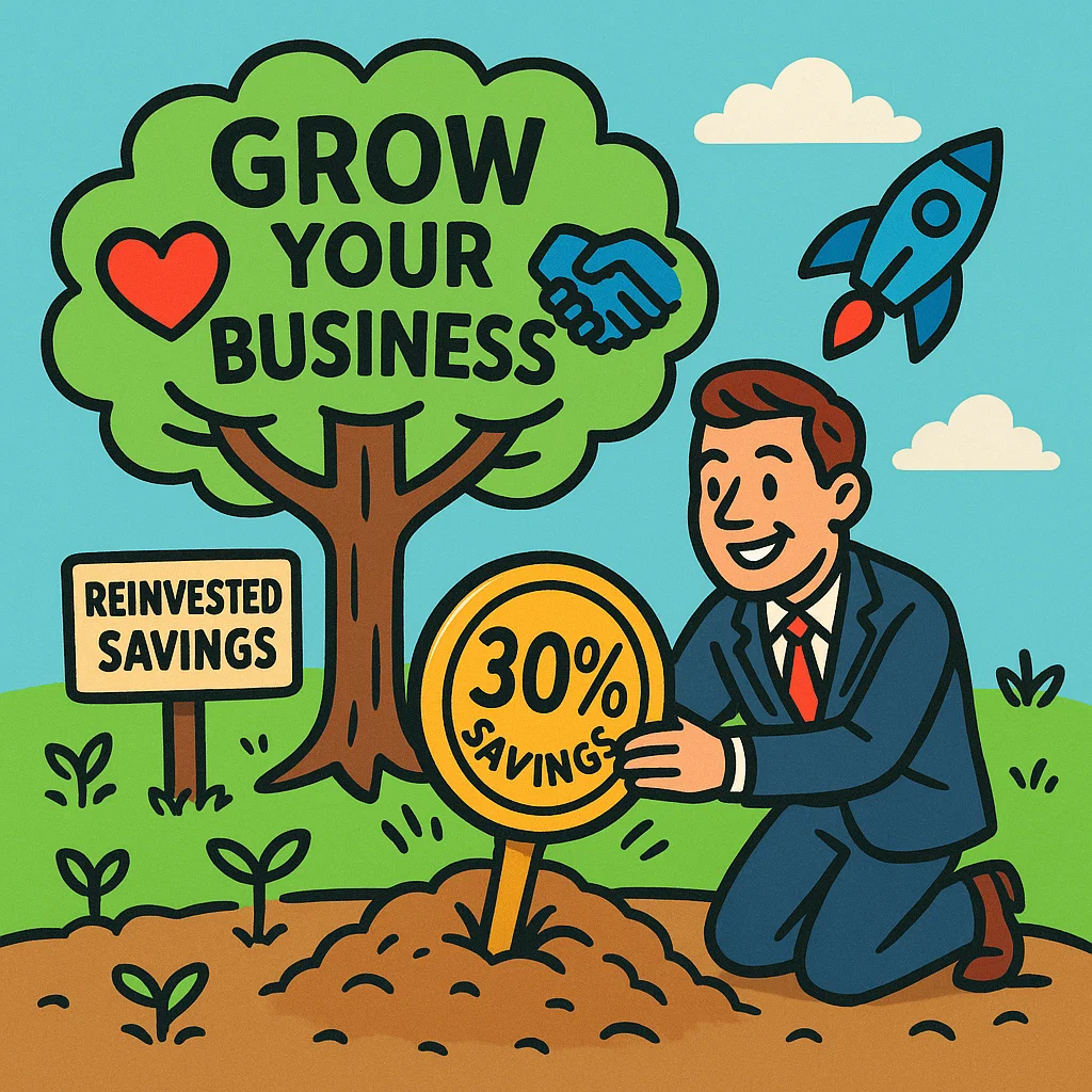 The 30% savings from Step 1 give you the freedom to reinvest in your business’s future. Use these funds to support employee wellness with programs like mental health resources, or expand through marketing or new hires. This reinvestment not only drives growth but also fosters a happier, more loyal team, easing your workload.